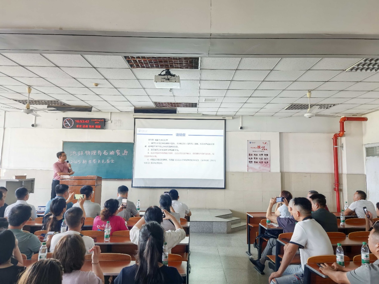 (通讯员 谭辰阳)金秋送爽,喜迎新程。9月14日下午4时,地球物理与石油资源学院在长江大学东校区12教504室隆重举行2025级新生家长见面会。学院领导班子成员、新生辅导员、班主任代表出席会议,线上线下近500名新生家长齐聚一堂,共话成长、共育未来。本次会议旨在深化家校协同育人机制,凝聚教育合力,助力新生顺利开启大学生活。