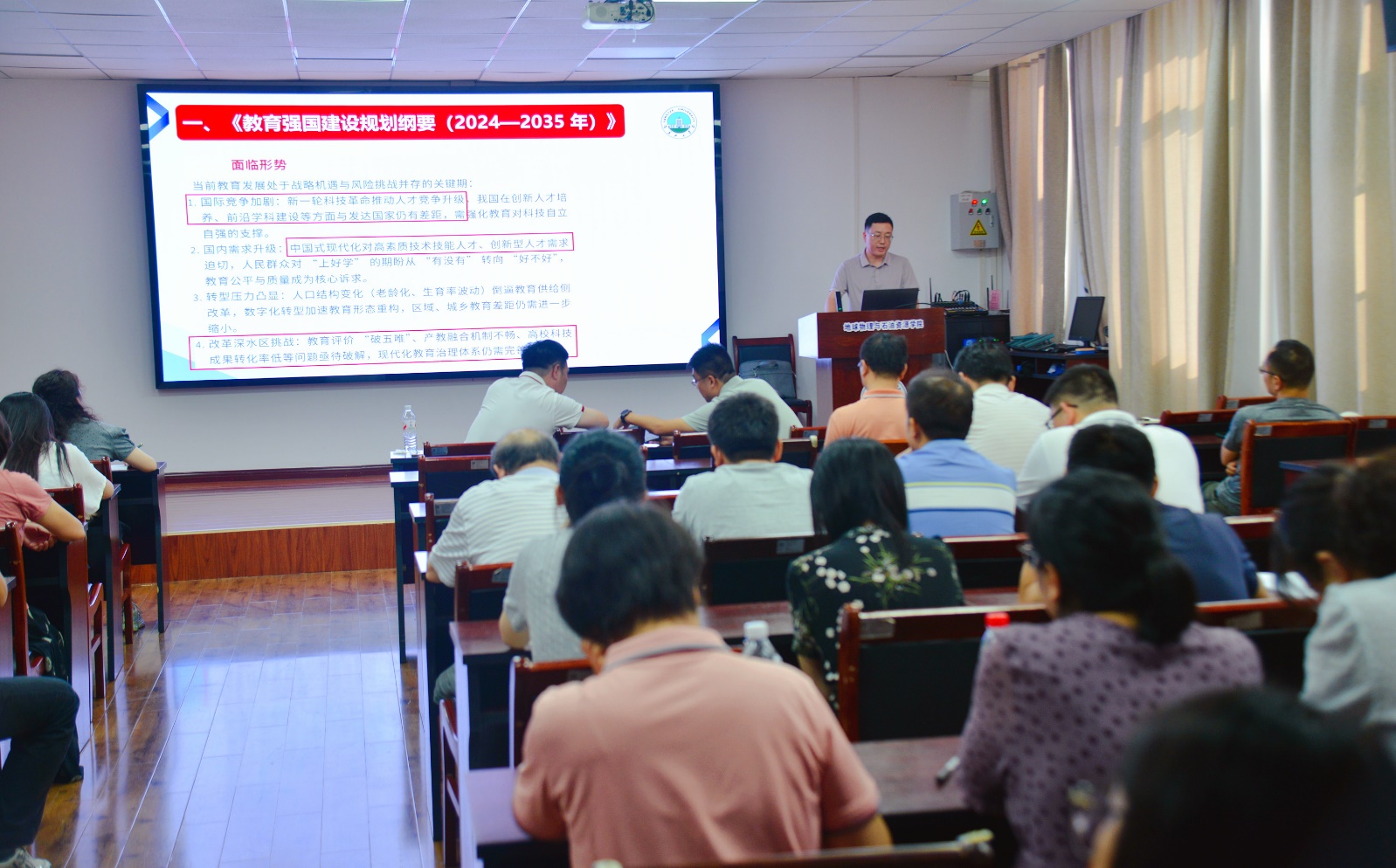 会议最后,常务副院长(正处级)赵彬作总结讲话。他强调,本次会议既是政治理论学习会,也是教学工作部署会。全体教职工一是要严守纪律规矩,筑牢廉洁防线;二是要对标教育强国要求,落实巡察整改任务;三是要重点抓好工程认证、推免等工作。学院将凝聚共识,推动科研规范、人才培养、教学建设高质量发展,为学校教育强国建设贡献力量。