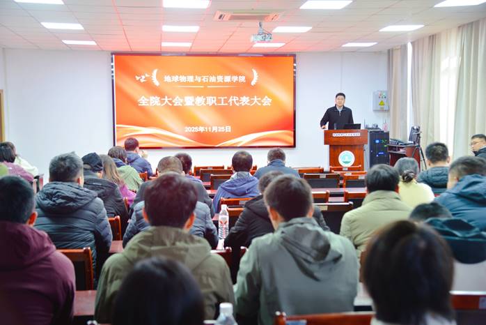 11 月 25 日下午,长江大学地球物理与石油资源学院全院大会暨教职工代表大会顺利召开。会议由常务副院长赵彬主持,全院教职工参会,共同为学院发展凝心聚力。