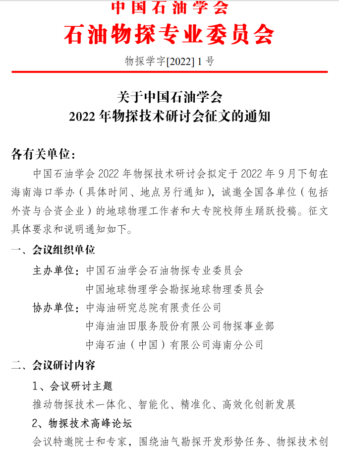 关于中国石油学会2022年物探技术研讨会正文的通知