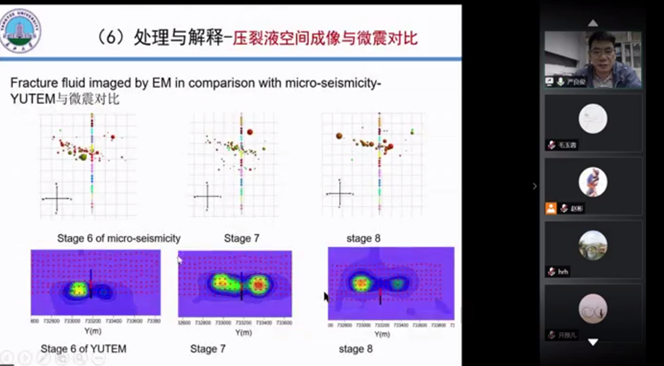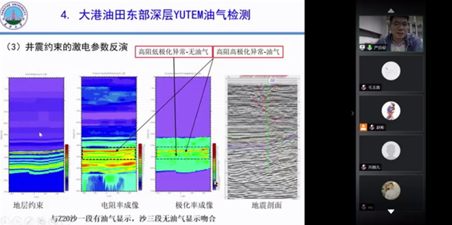 严良俊教授首先介绍了长江大学地球物理与石油资源学院的发展历史及所带领团队的主要研究方向。报告结合我国油藏开发的关键问题、储层含油及含水时的电性特征,从流体识别的电性基础、可控源电磁勘探方法、电磁法流体识别方法与技术及应用实例等六个方面详细介绍了电磁法在流体识别方面的研究成果。此次线上讲座吸引了国内众多高校院所及石油、地矿及煤田等单位的关注,收看直播人数近300人。报告取得极大成功,扩大了长江大学地球物理与石油资源学院电磁研究团队在国内外的影响。讲座结束后多所高校及企事业单位对严良俊教授课题组的相关研究成果表示了肯定,并希望尽早加强全面合作与交流。
