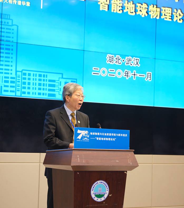 在庄严的国歌声中,庆典正式开始。副校长张玉清代表学校向各位嘉宾的到来表示欢迎,向遍布全球的1万余地物校友致以亲切的问候。他回顾了地物学院70年风雨历程,几代地物人秉持求实进取、敢为人先的石油勘探精神,坚持“质量立院、人才强院、开放办院、创新兴院”的治院理念,始终致力于人才培养、科学研究、社会服务和先进文化的传承创新,取得了令人瞩目的成绩,形成了自己的办学特色和学科优势,赢得了社会各界的广泛赞誉。他对付出心血的广大师生、校友和长期支持、关心地物学院发展的有关单位领导和专家表示感谢,对地物学院的未来充满信心,坚信地物学院的明天会更好。