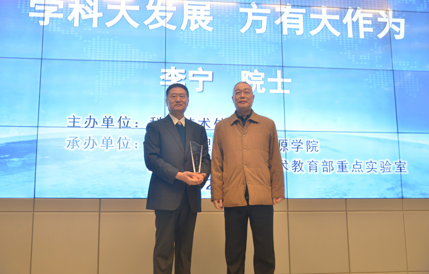 学术报告结束后,李宁院士与在场师生进行了亲切互动。校长冯征为李宁院士颁发“长江讲坛”杯,并合影留念。
