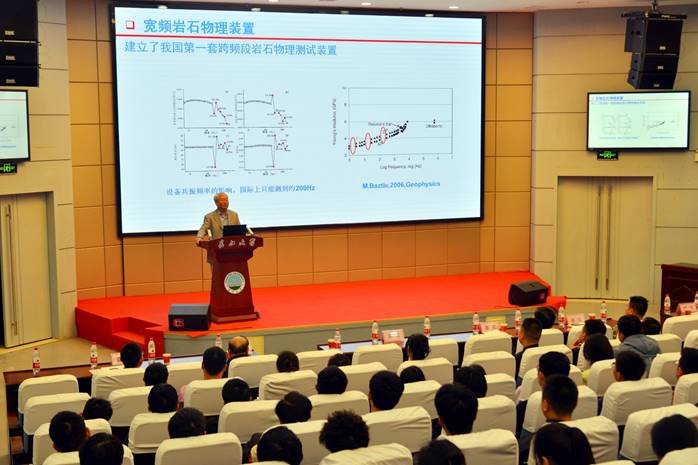 10月10日上午,中国石油大学(北京)地球物理学院博士生导师王尚旭教授应邀到我校武汉校区作了题为“宽频段岩石物理”的学术报告。副校长江厚顺、院党委书记周俊、副院长向葵、陈伟和部分教师学生等200余人参加了报告会。副院长赵彬(主持工作)主持本次报告会 。