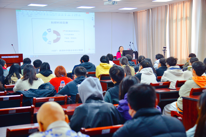 储冬红副研究馆员首先强调了参考文献在学术论文中的重要性。她指出,参考文献不仅是论文的支撑,更是衡量论文质量和学术水平的重要指标。通过合理引用前人的研究成果,可以增强论文的可信度和权威性,避免重复研究,提高研究的创新性和深度。此外,正确的参考文献引用还能展示作者的学术素养和研究态度,为读者提供进一步阅读的线索。储冬红副研究馆员通过丰富的实例和生动的讲解,使在场的师生深刻理解了参考文献在学术研究中的关键作用。其次,她详细介绍了查找切题的高水平文献的步骤和技巧。她指出,高效查找文献的关键在于以下几个方面:明确研究方向、使用专业的文献数据库、利用高级搜索功能、阅读和引用相关文献、了解本领域的概况。最后讲解了选择和引用参考文献的基本原则,诸如参考文献的数量要求、参考文献引用原则、参考文献标引著录格式规范。
