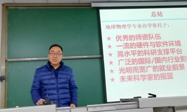 首先,由彭晓波副院长宣讲了专业分流方案。接着唐新功教授、彭晓波副院长和张占松院长分别就地球物理学、勘查技术与工程(物探方向)和勘查技术与工程(测井方向)的专业现状、师资、教学团队、教学设施和科研情况,以及专业前景等给同学做了详细的解读,充分展示了各专业的鲜明特色和就业前景,赢得了同学们的阵阵掌声。